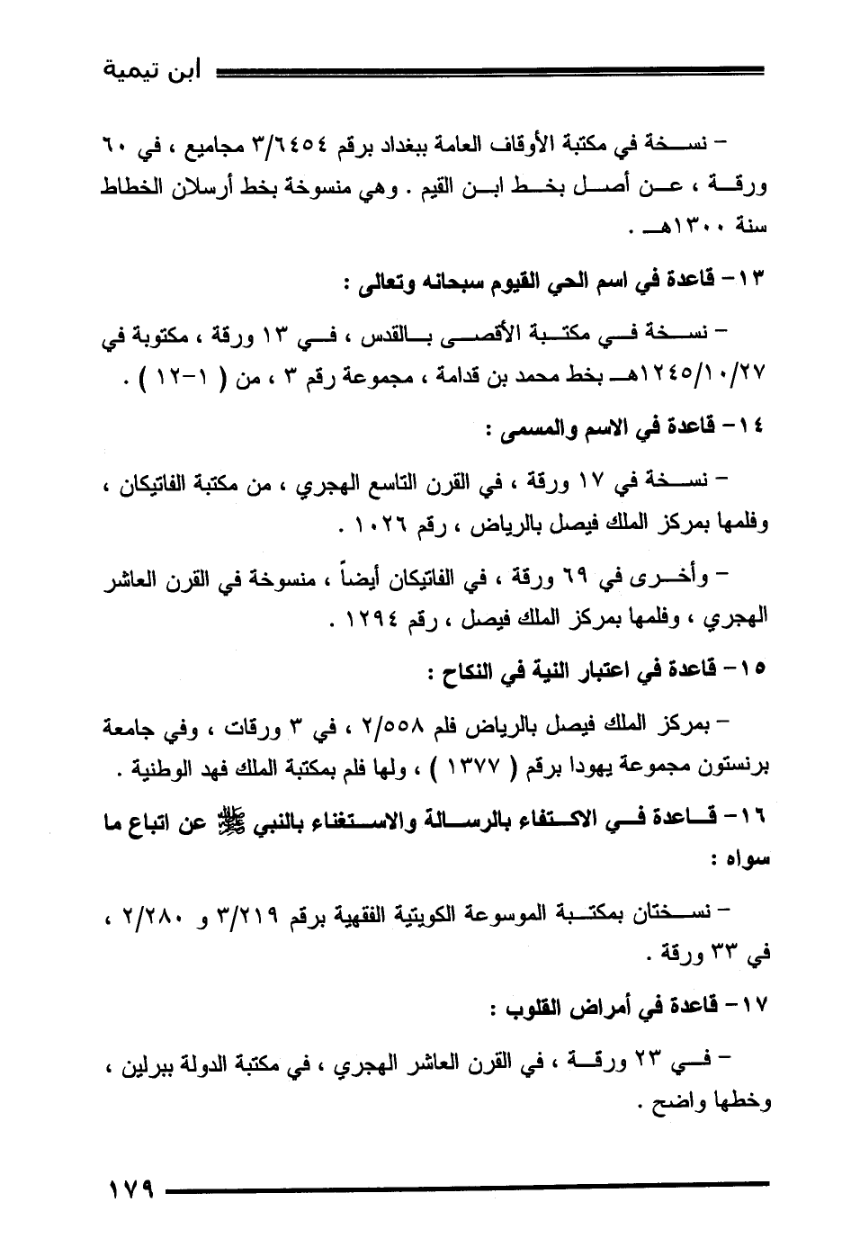 - وأخرى في 69 ورقة، في الفاتيكان أيضاً، منسوخة في القرن العاشر الهجري، وفلمها بمركز الملك فيصل، رقم 1294.