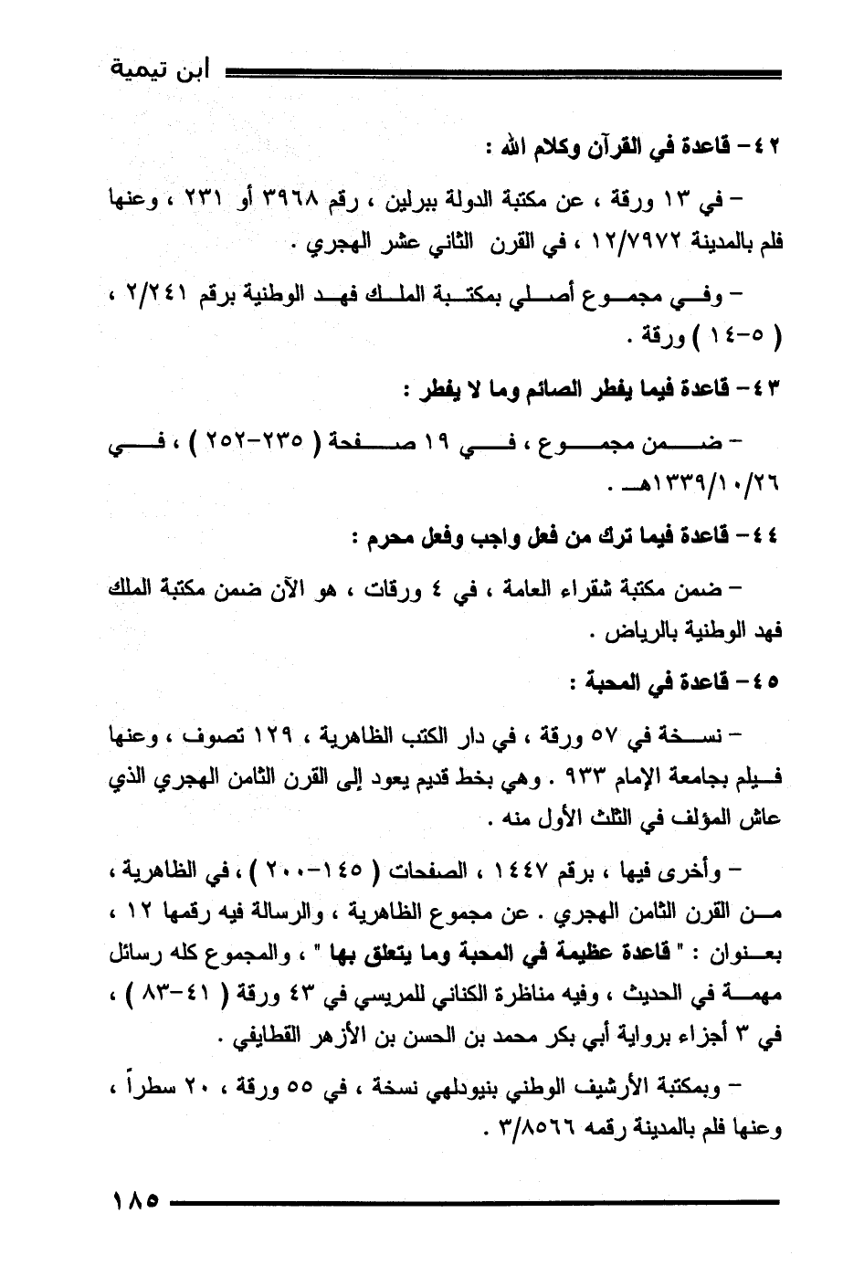 - في 13 ورقة، عن مكتبة الدولة ببرلين، رقم 3968 أو 231، وعنها