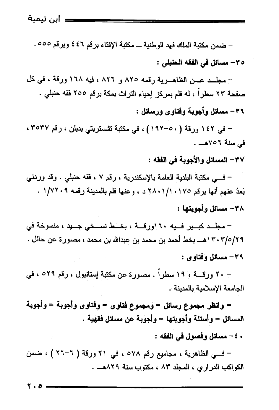 = وانظر مجموع رسائل = ومجموع فتاوى = وفتاوى وأجوبة = وأجوبة المسائل = وأسئلة وأجوبتها = وأجوبة عن مسائل فقهية.