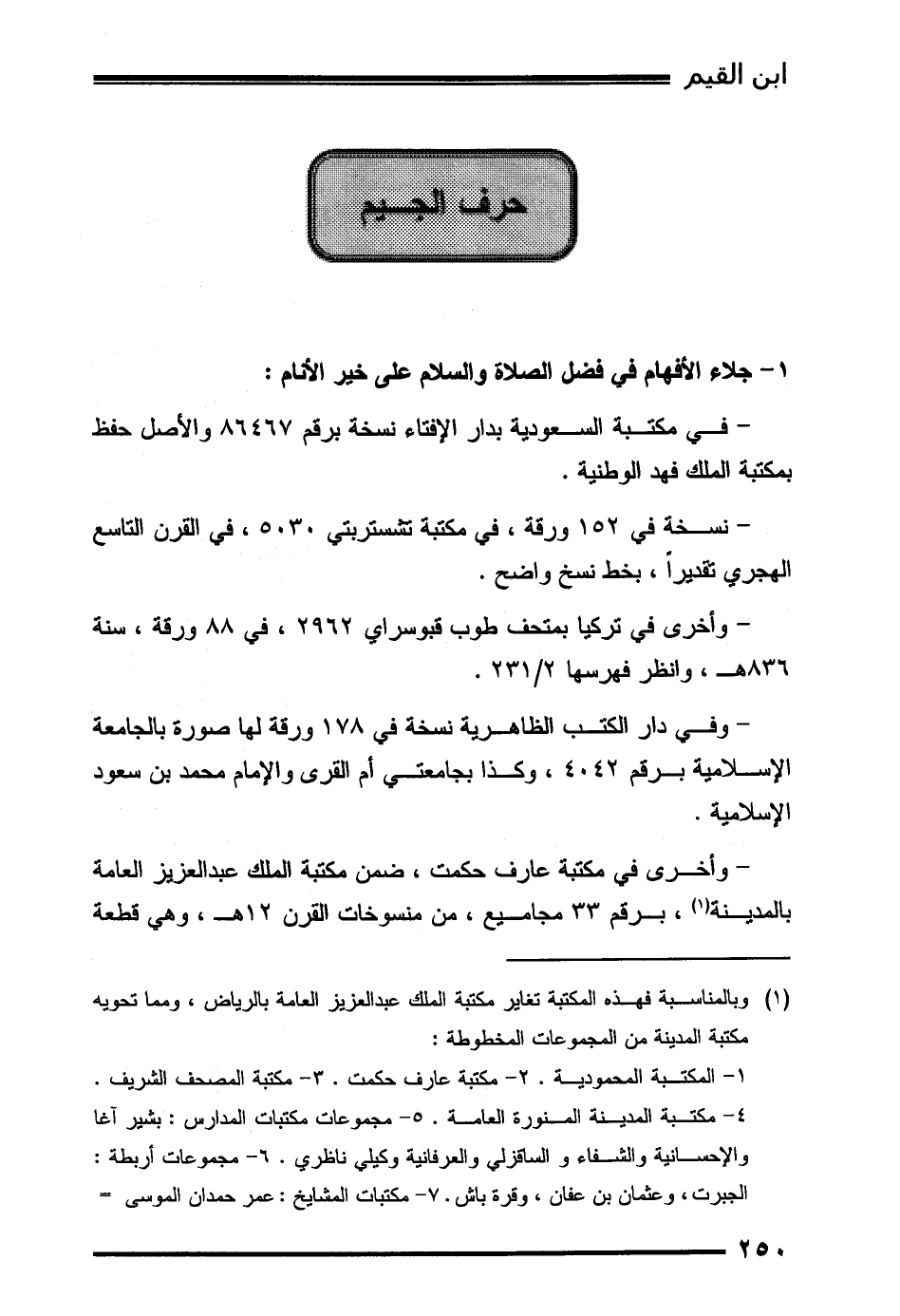 1- جلاء الأفهام في فضل الصلاة والسلام على خير الأنام: