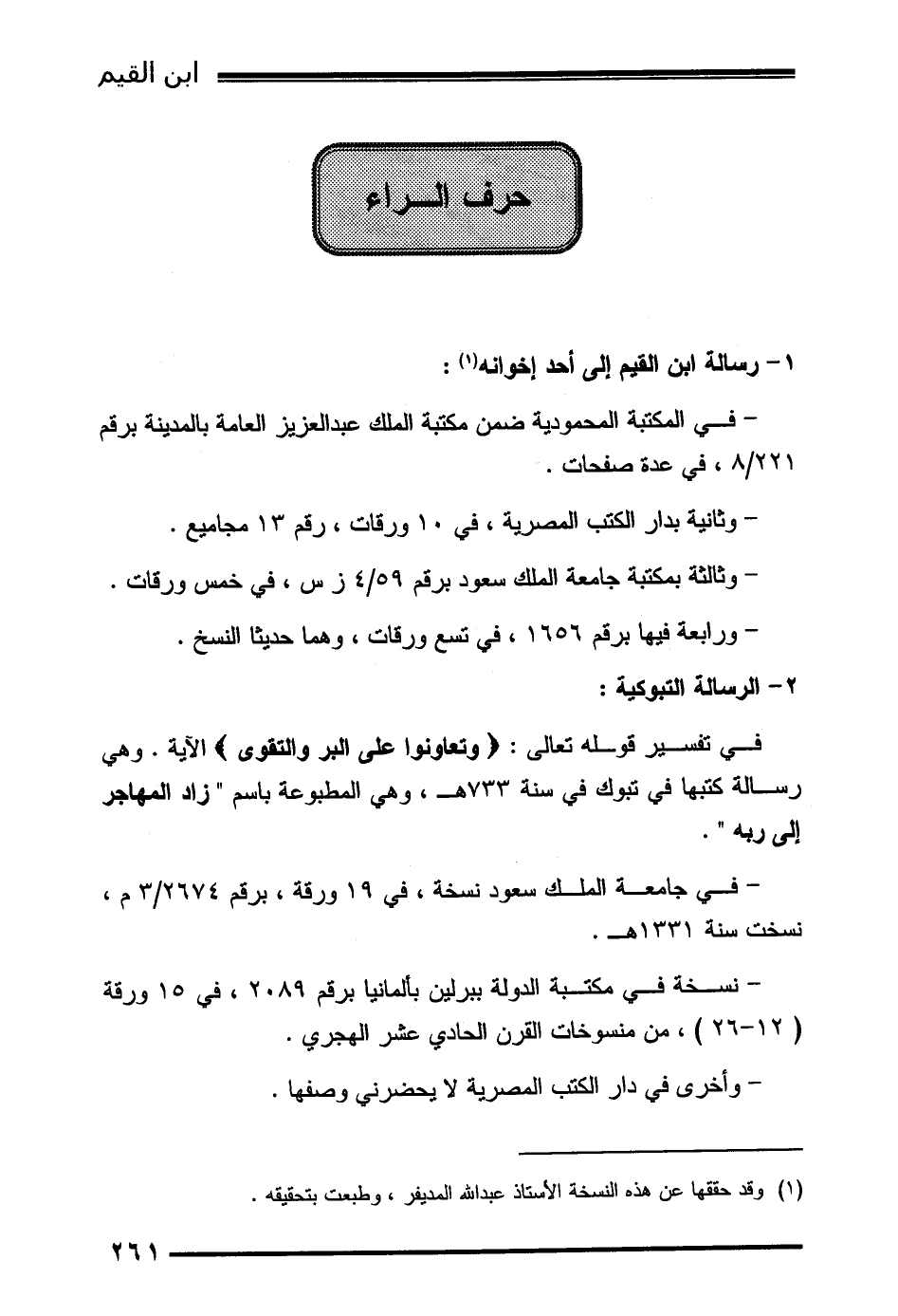 1- رسالة ابن القيم إلى أحد إخوانه (1) :