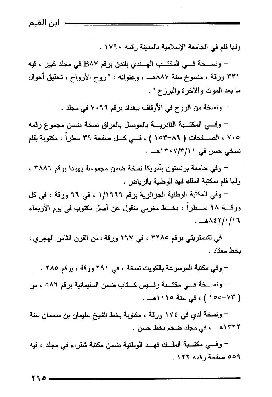 - وفي مكتبة الملك فهد الوطنية ضمن مكتبة شقراء في مجلد، فيه 559 صفحة رقمه 122.