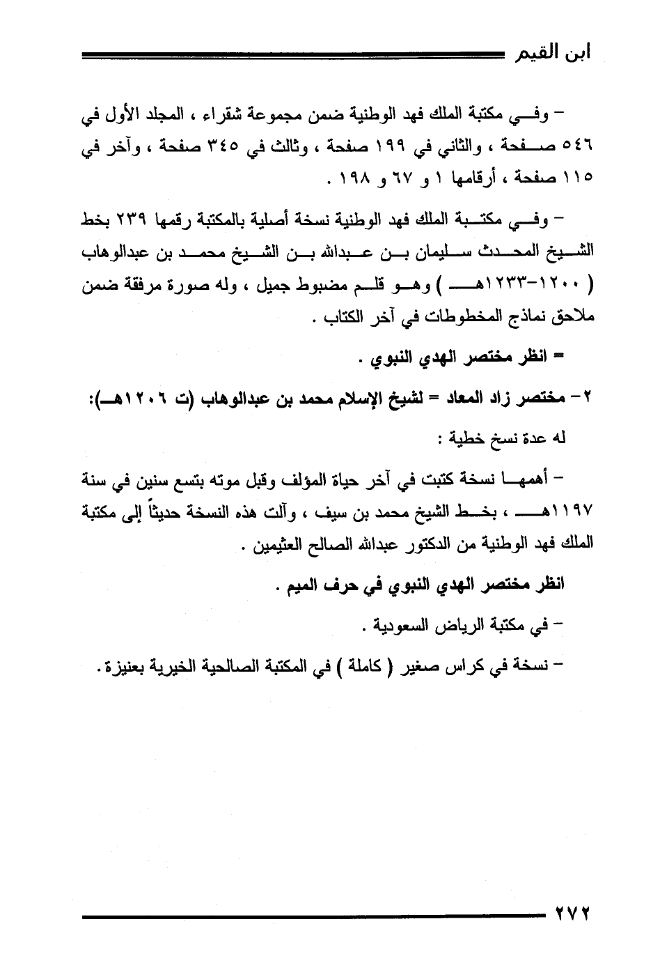 2- مختصر زاد المعاد = لشيخ الإسلام محمد بن عبد الوهاب (ت 1206هـ) :