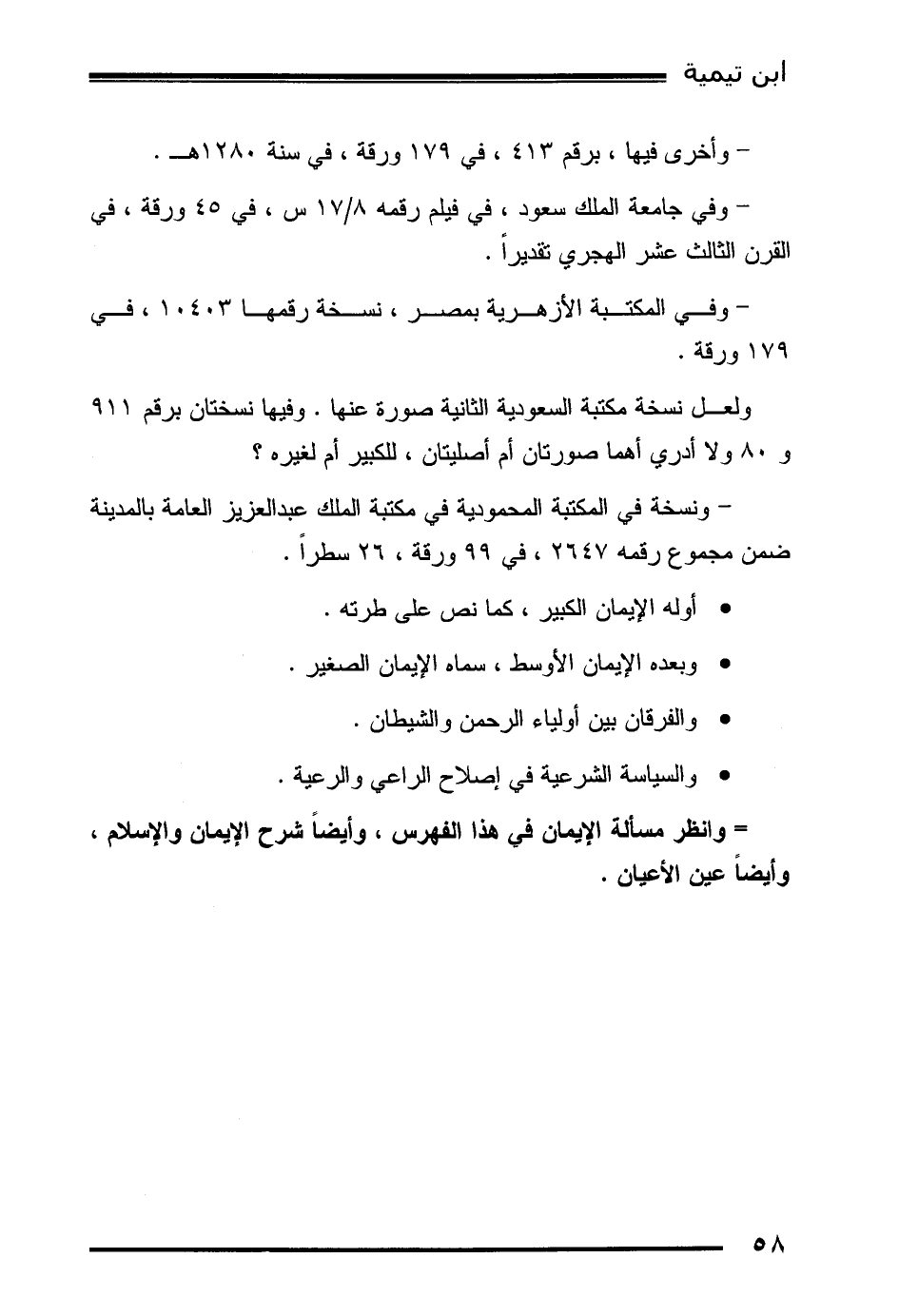 = وانظر مسألة الإيمان في هذا الفهرس، وأيضاً شرح الإيمان والإسلام، وأيضاً عين الأعيان.