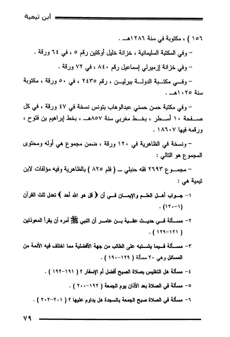 - مجموع 2693 فقه حنبلي ـ (فلم 825) بالظاهرية وفيه مؤلفات لابن تيمية هي: