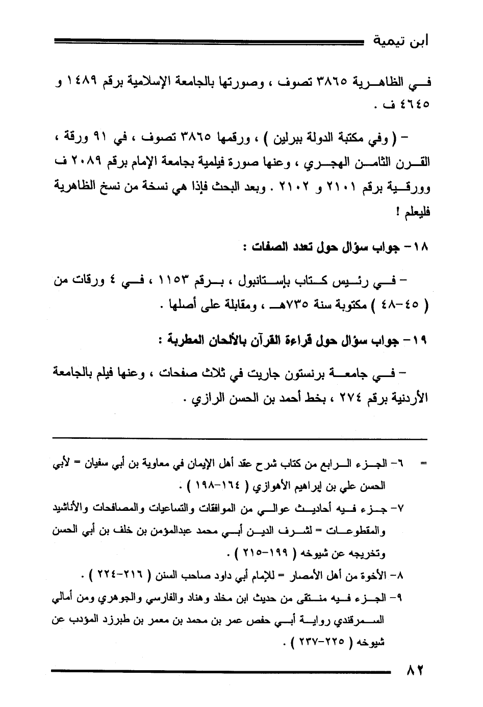 - (وفي مكتبة الدولة ببرلين) ، ورقمها 3865 تصوف، في 91 ورقة، القرن الثامن الهجري، وعنها صورة فيلمية بجامعة الإمام برقم 2089 ف وورقية برقم 2101 و 2102. وبعد البحث فإذا هي نسخة من نسخ الظاهرية فليعلم!