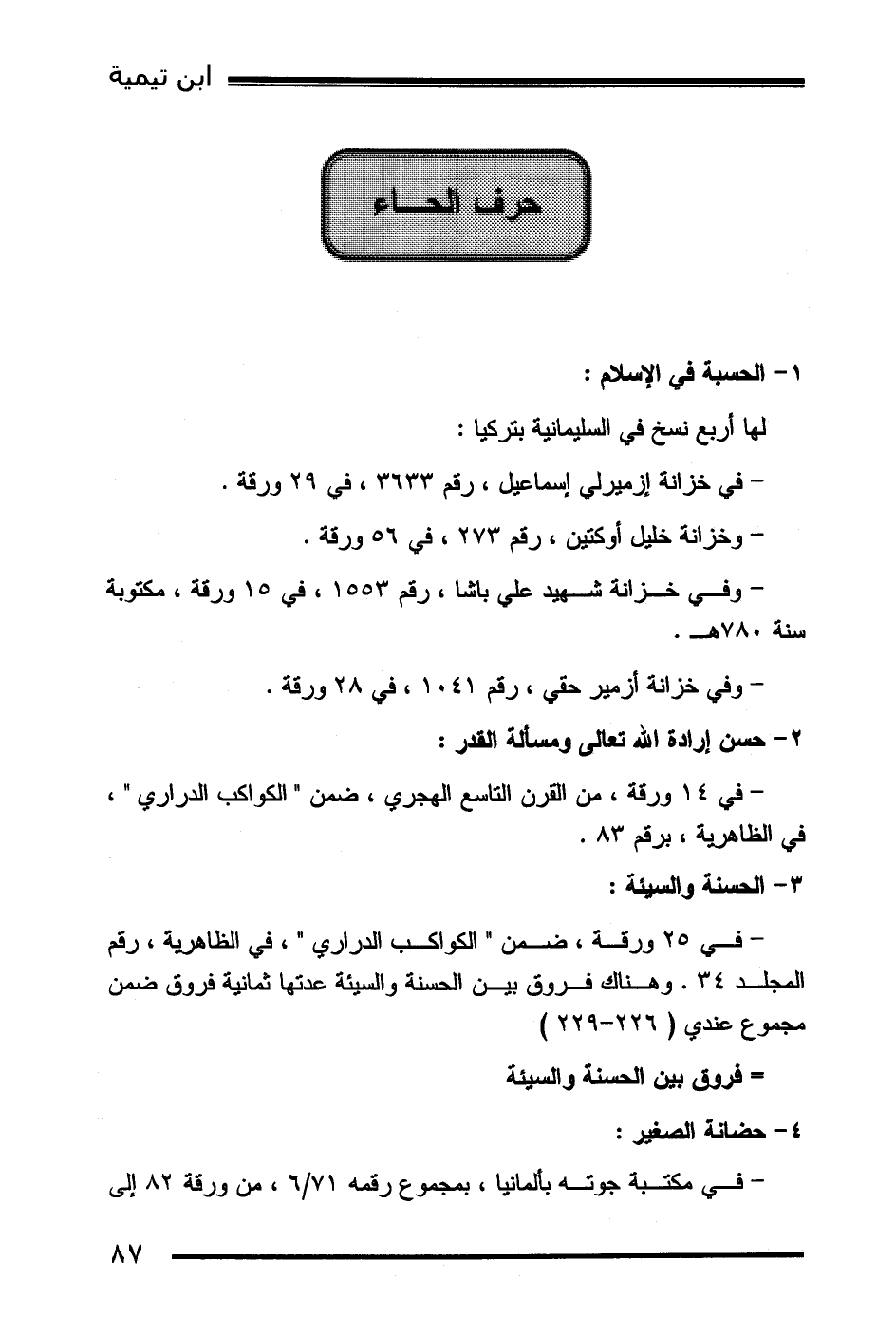 - وخزانة خليل أوكتين، رقم 273، في 56 ورقة.