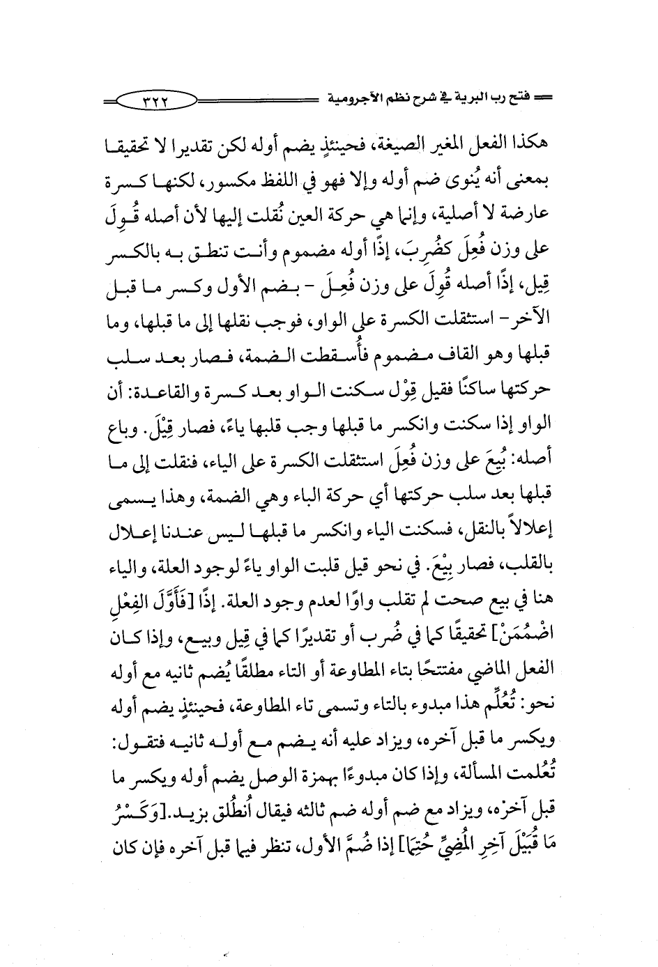 إذًا [فَأَوَّلَ الفِعْلِ اضْمُمَنْ] تحقيقًا كما في ضُرب أو تقديرًا كما في قِيل وبيع، وإذا كان الفعل الماضي مفتتحًا بتاء المطاوعة أو التاء مطلقًا يُضم ثانيه مع أوله نحو: تُعُلِّم هذا مبدوء بالتاء وتسمى تاء المطاوعة، فحينئذٍ يضم أوله ويكسر ما قبل آخره، ويزاد عليه أنه يضم مع أوله ثانيه فتقول: تُعُلمت المسألة، وإذا كان مبدوءًا بهمزة الوصل يضم أوله ويكسر ما قبل آخره، ويزاد مع ضم أوله ضم ثالثه فيقال اُنطُلق بزيد. [وَكَسْرُ مَا قُبَيْلَ آخِرِ المُضِيِّ حُتِمَا] إذا ضُمَّ الأول، تنظر فيما قبل آخره فإن كان