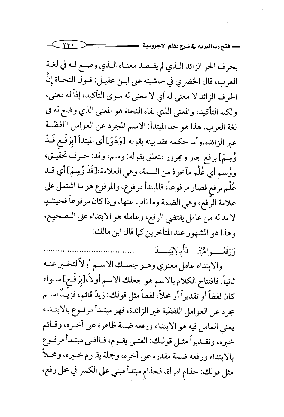 وَرَفَعُوا مُبْتَدَأً بِالِابْتِدَا ... ....................