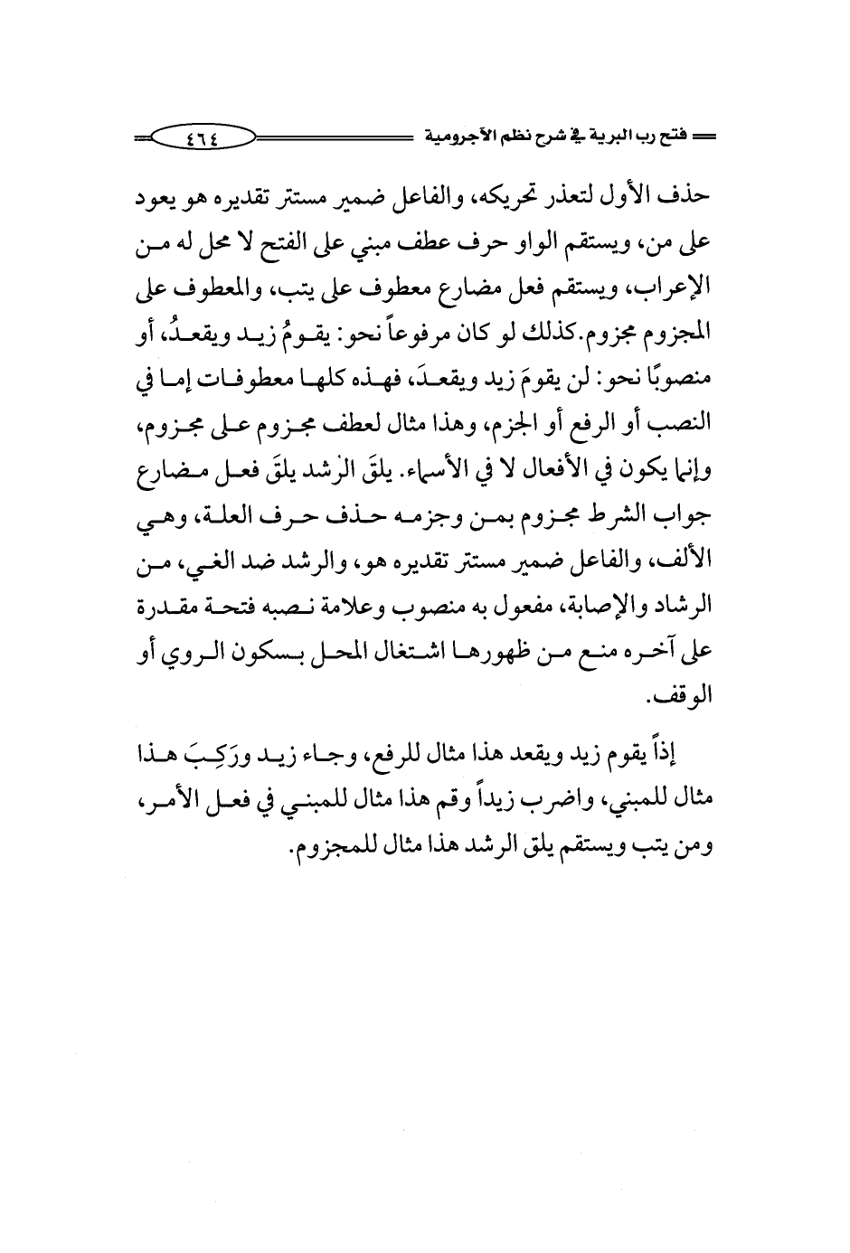 إذاً يقوم زيد ويقعد هذا مثال للرفع، وجاء زيد ورَكِبَ هذا مثال للمبني، واضرب زيداً وقم هذا مثال للمبني في فعل الأمر، ومن يتب ويستقم يلق الرشد هذا مثال للمجزوم.