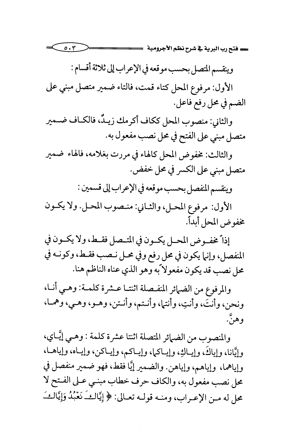 إذا ً مخفوض المحل يكون في المتصل فقط، ولا يكون في المنفصل، وإنما يكون في محل رفع وفي محل نصب فقط، وكونه في محل نصب قد يكون مفعولا ًبه وهو الذي عناه الناظم هنا.