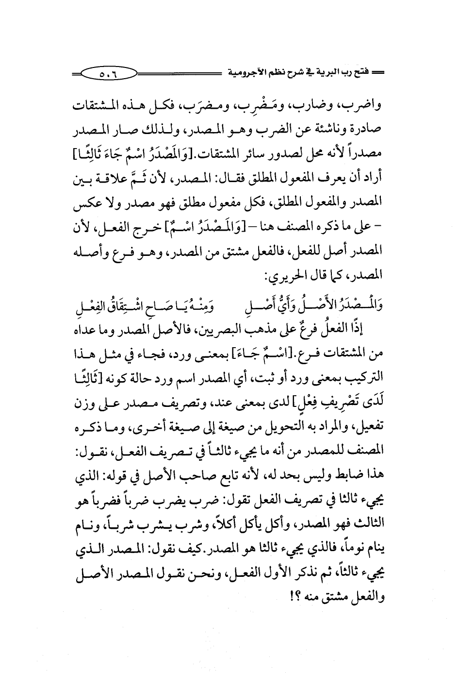 وَالْمَصْدَرُ الأَصْلُ وَأَيُّ أَصْلِ ... وَمِنْهُ يَا صَاحِ اشْتِقَاقُ الفِعْلِ
