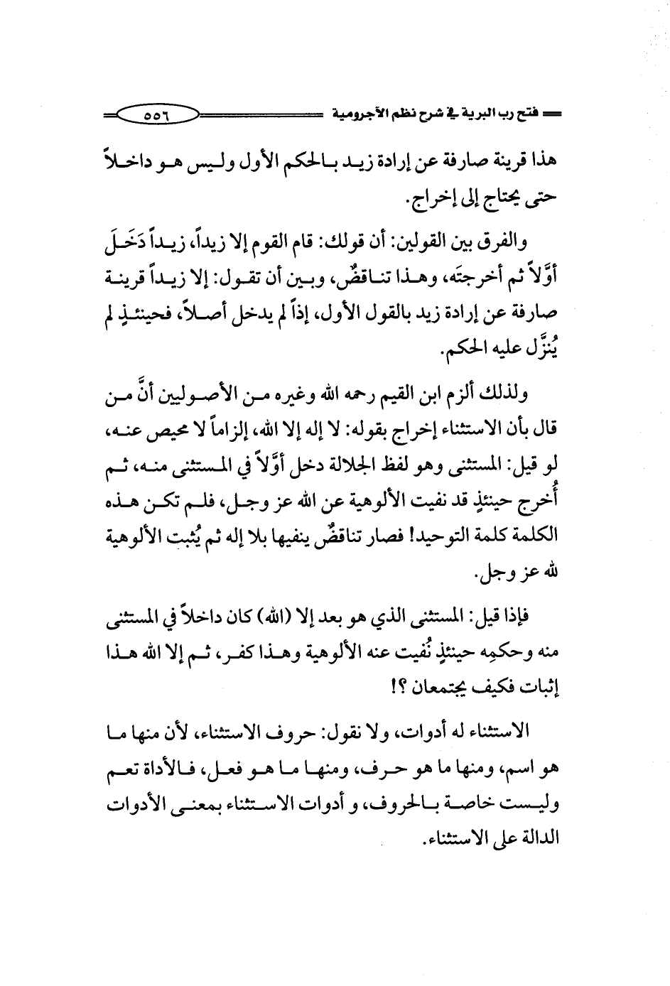 ولذلك ألزم ابن القيم رحمه الله وغيره من الأصوليين أنَّ من قال بأن الاستثناء إخراج بقوله: لا إله إلا الله، إلزاماً لا محيص عنه، لو قيل: المستثنى وهو لفظ الجلالة دخل أوَّلاً في المستثنى منه، ثم أُخرج حينئذٍ قد نفيت الألوهية عن الله عز وجل، فلم تكن هذه الكلمة كلمة التوحيد! فصار تناقضٌ ينفيها بلا إله ثم يُثبت الألوهية لله عز وجل.