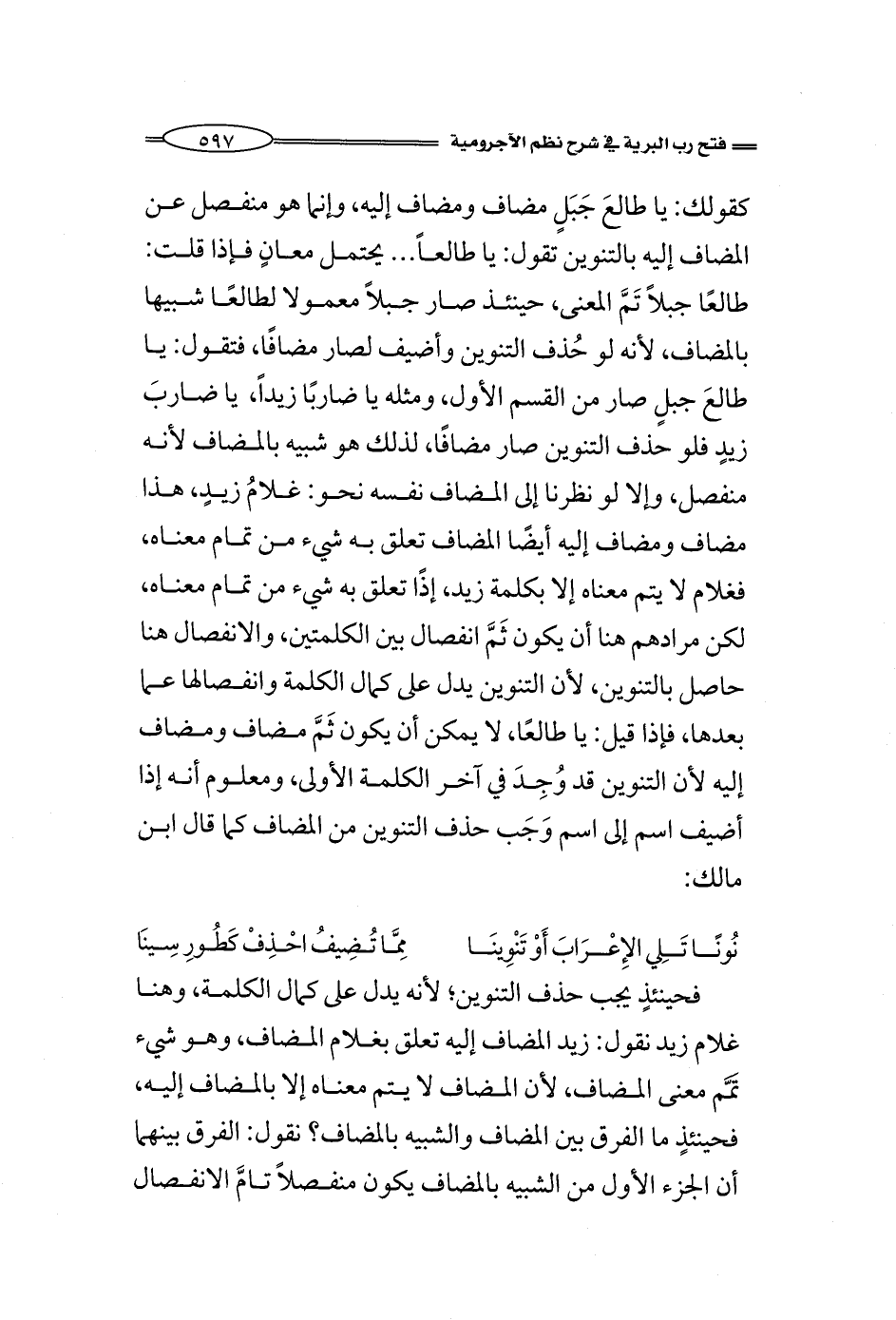 نُونًا تَلِي الإِعْرَابَ أَوْ تَنْوِينَا ... مِمَّا تُضِيفُ احْذِفْ كَطُورِ سِينَا