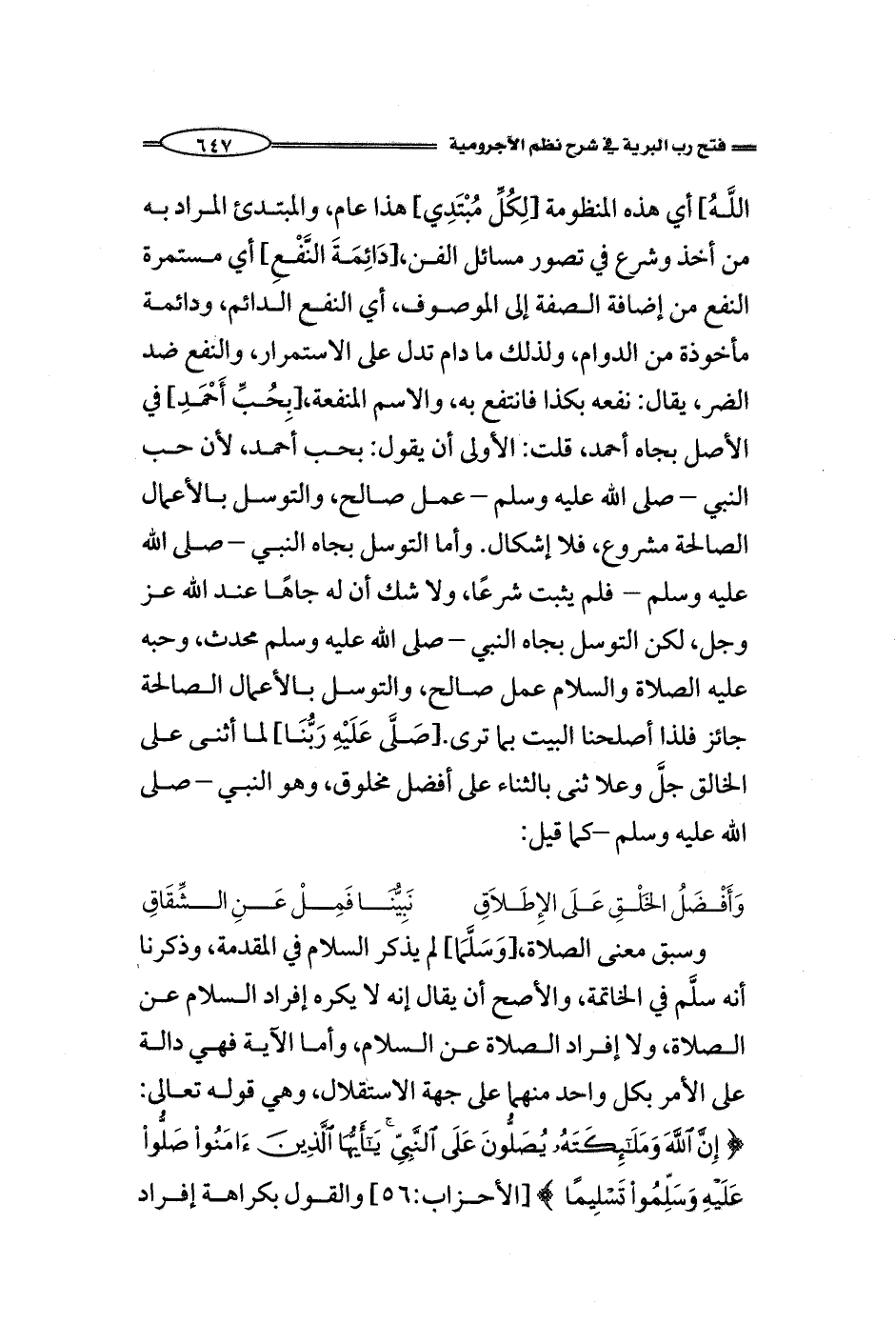 وسبق معنى الصلاة، [وَسَلَّمَا] لم يذكر السلام في المقدمة، وذكرنا أنه سلَّم في الخاتمة، والأصح أن يقال إنه لا يكره إفراد السلام عن الصلاة، ولا إفراد الصلاة عن السلام، وأما الآية فهي دالة على الأمر بكل واحد منهما على جهة الاستقلال، ((إِنَّاللَّهَ وَمَلَائِكَتَهُ يُصَلُّونَ عَلَى النَّبِيِّ يَا أَيُّهَا الَّذِينَ آَمَنُوا صَلُّوا عَلَيْهِ وَسَلِّمُوا تَسْلِيمًا)) [الأحزاب:56] والقول بكراهة إفراد