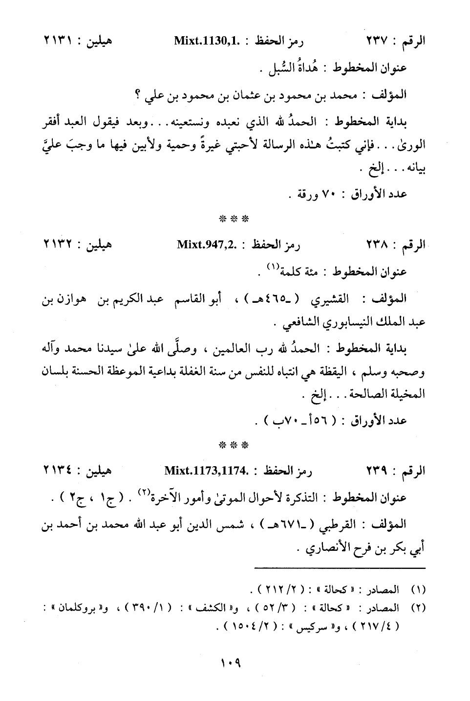 (¬2) المصادر: "كحالة": (3/ 52)، و"الكشف": (1/ 390)، و"بروكلمان": (4/ 217)، و"سركيس": (2/ 1504).