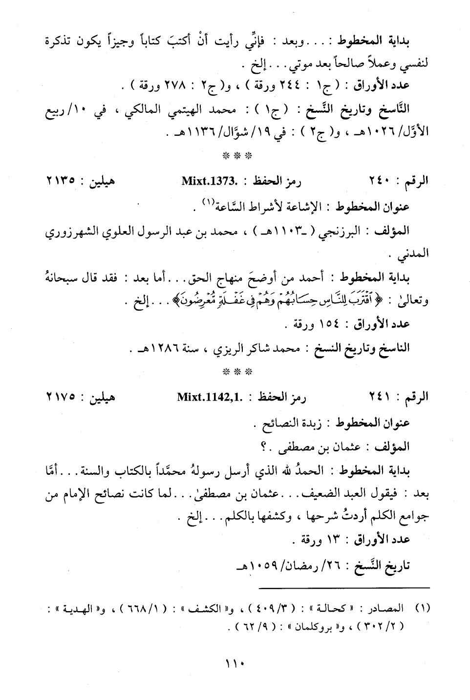 (¬1) المصادر: "كحالة": (3/ 409)، و"الكشف": (1/ 668)، و"الهدية": (2/ 302)، و"بروكلمان": (9/ 62).