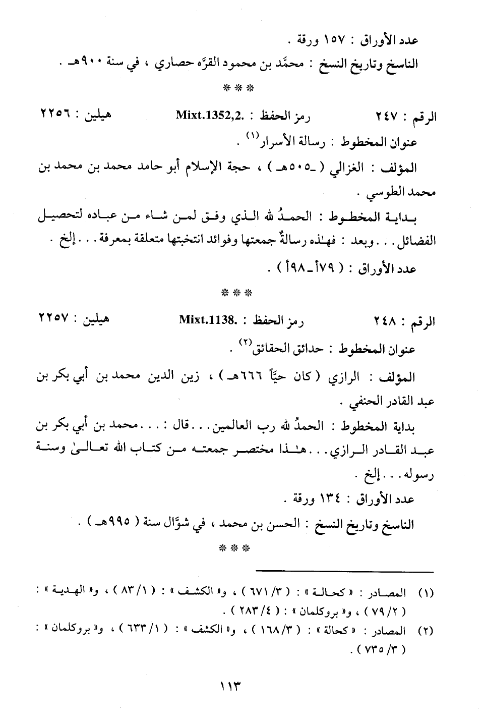 (¬1) المصادر: "كحالة": (3/ 671)، و"الكشف": (1/ 83)، و"الهدية": (2/ 79)، و"بروكلمان": (4/ 283).