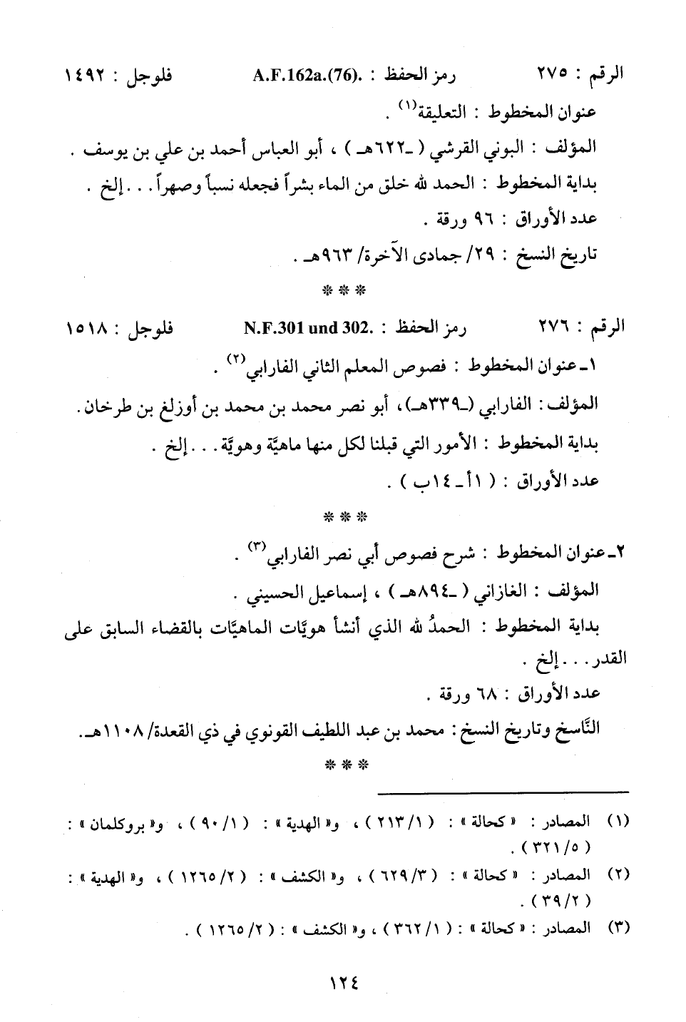 الرقم: 276. . . رمز الحفظ: N.F.301 und 302 . . . فلوجل: 1518