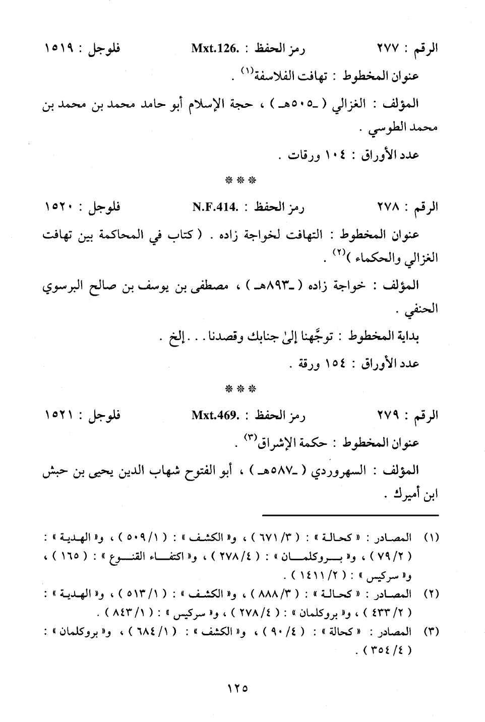 (¬3) المصادر: "كحالة": (4/ 90)، و"الكشف": (1/ 684)، و"بروكلمان": (4/ 354).