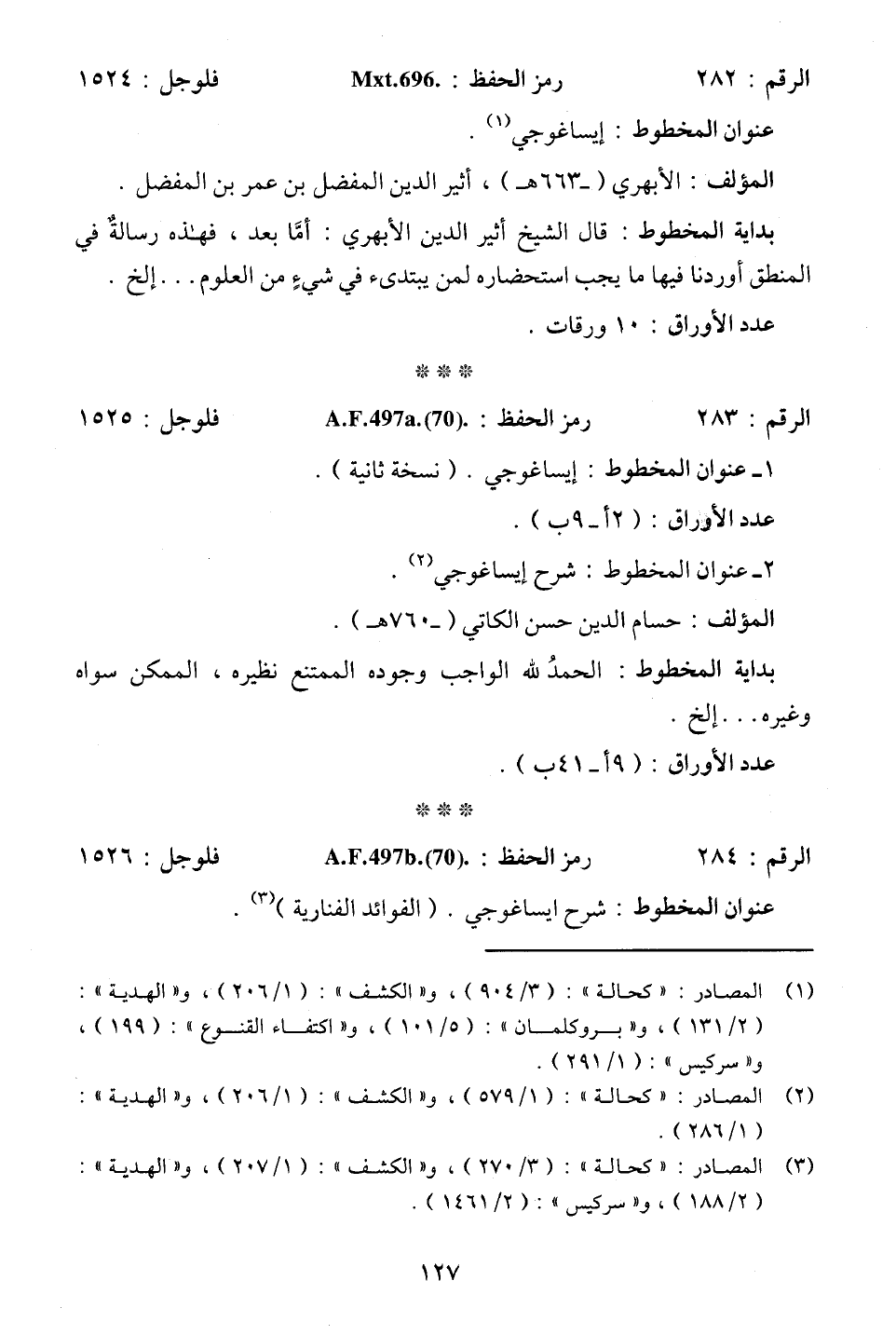 الرقم: 284. . . رمز الحفظ: A.F.497 b. (70) . . . فلوجل: 1526