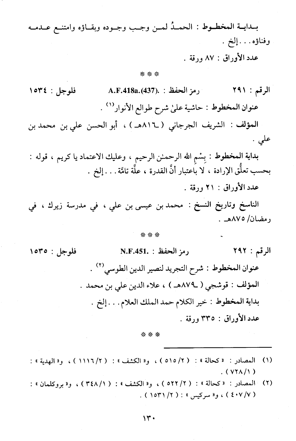 الرقم: 291. . . رمز الحفظ: A.F.418 a. (437) . . . فلوجل: 1534