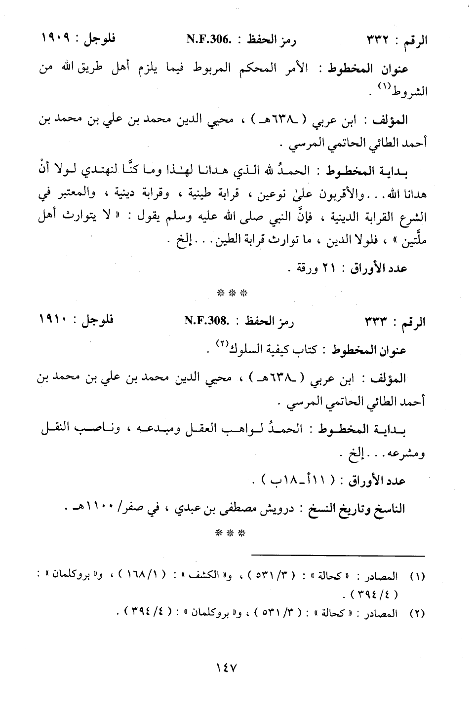 (¬1) المصادر: "كحالة": (3/ 531)، و"الكشف": (1/ 168)، و"بروكلمان": (4/ 394).