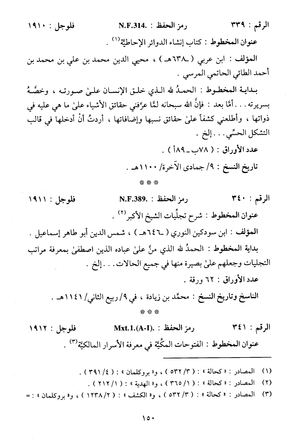 الرقم: 340. . . رمز الحفظ: N.F.389 . . . فلوجل: 1911