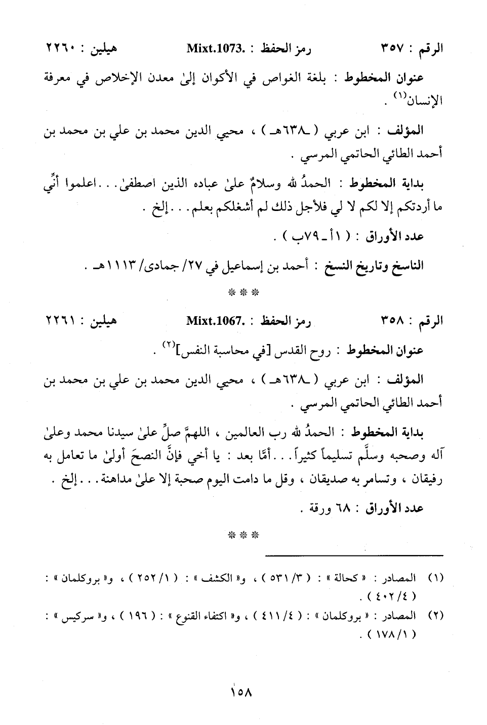 (¬1) المصادر: "كحالة": (3/ 531)، و"الكشف": (1/ 252)، و"بروكلمان": (4/ 402).