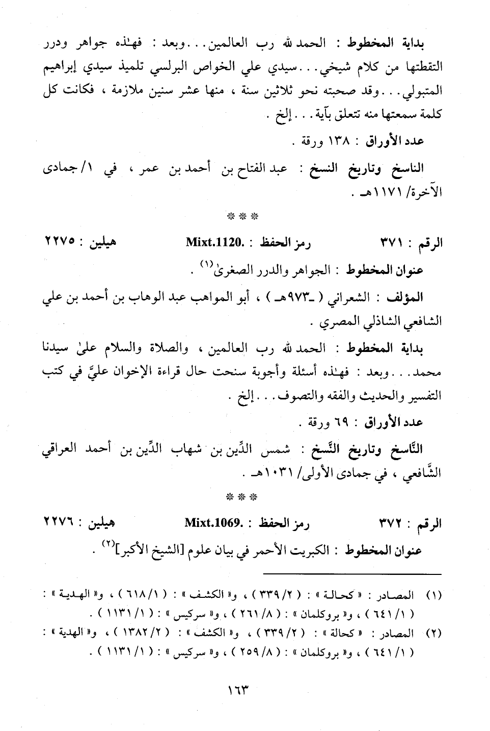 بداية المخطوط: الحمد للَّه رب العالمين. . . وبعد: فهذه جواهر ودرر التقطتها من كلام شيخي. . . سيدي علي الخواص البرلسي تلميذ سيدي إبراهيم المتبولي. . . وقد صحبته نحو ثلاثين سنة، منها عشر سنين ملازمة، فكانت كل كلمة سمعتها منه تتعلق بآية. . . إلخ.