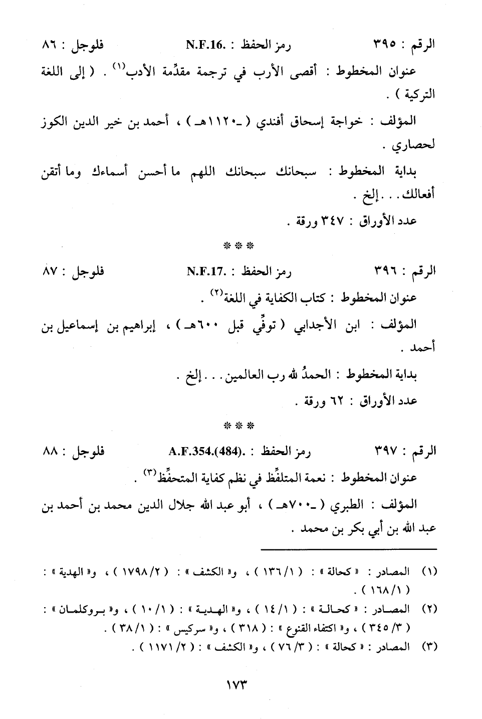 الرقم: 396. . . رمز الحفظ: N.F.17 . . . فلوجل: 87