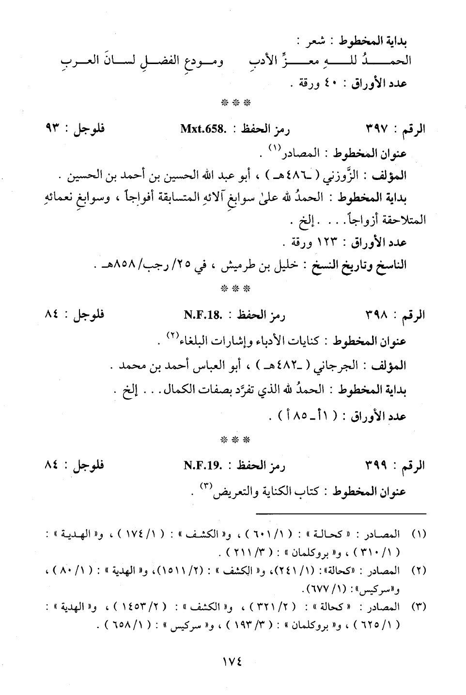 الرقم: 397. . . رمز الحفظ: Mxt.658. . . فلوجل: 93