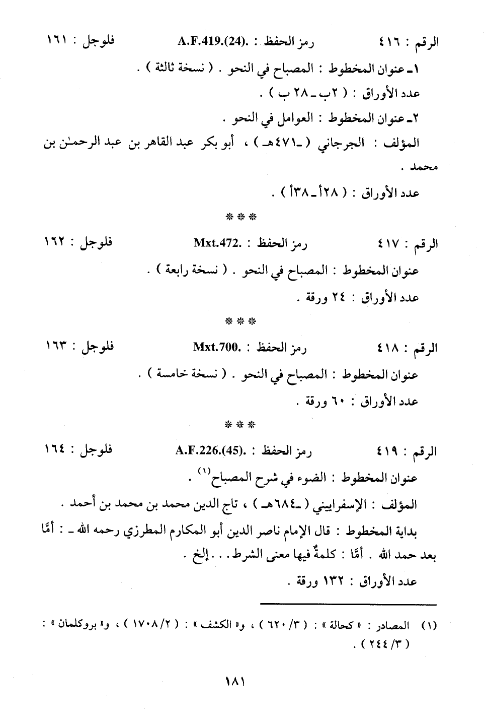 (¬1) المصادر: "كحالة": (3/ 620)، و"الكشف": (2/ 1708)، و"بروكلمان": (3/ 244).