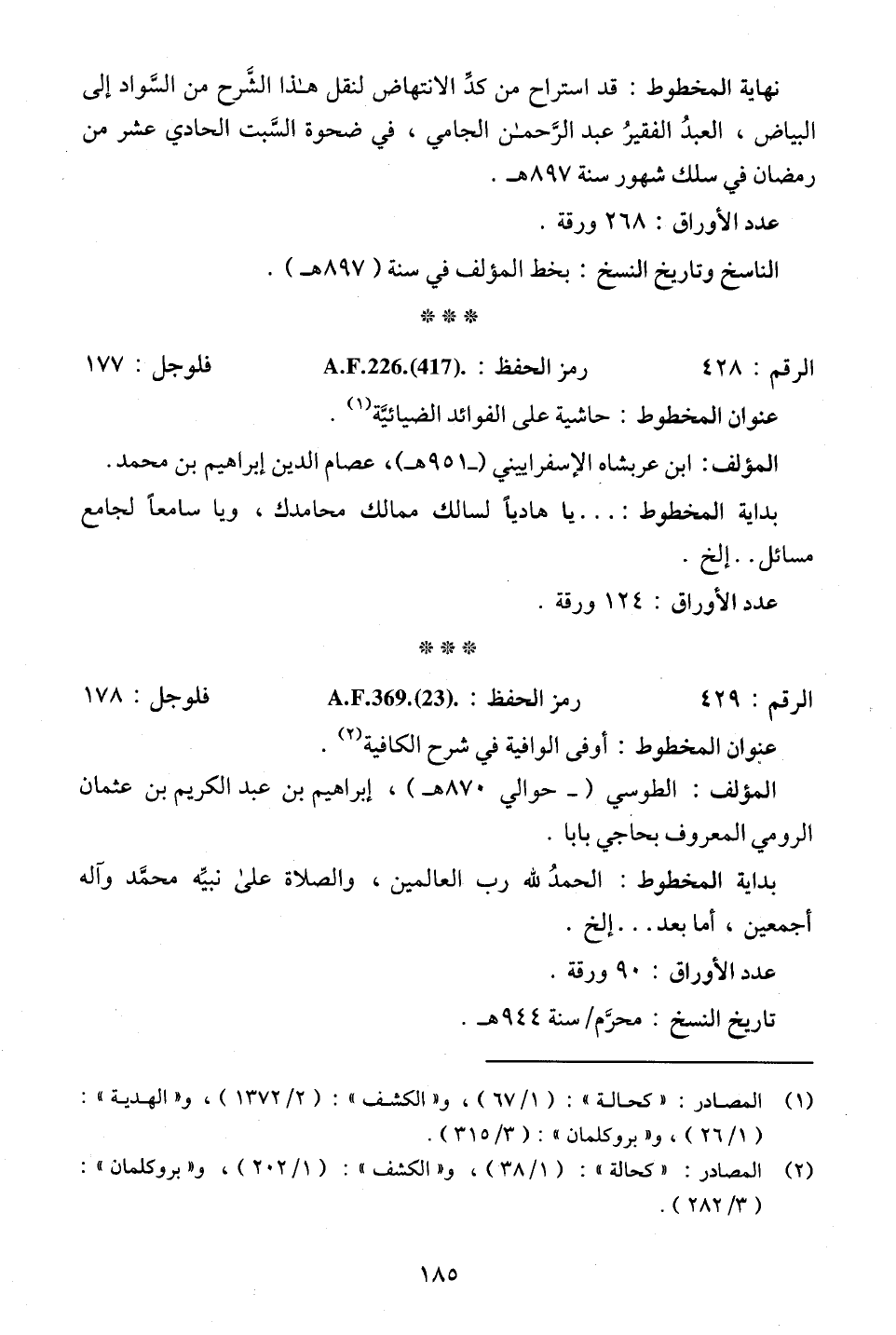 (¬1) المصادر: "كحالة": (1/ 67)، و"الكشف": (2/ 1372)، و"الهدية": (1/ 26)، و"بروكلمان": (3/ 315).