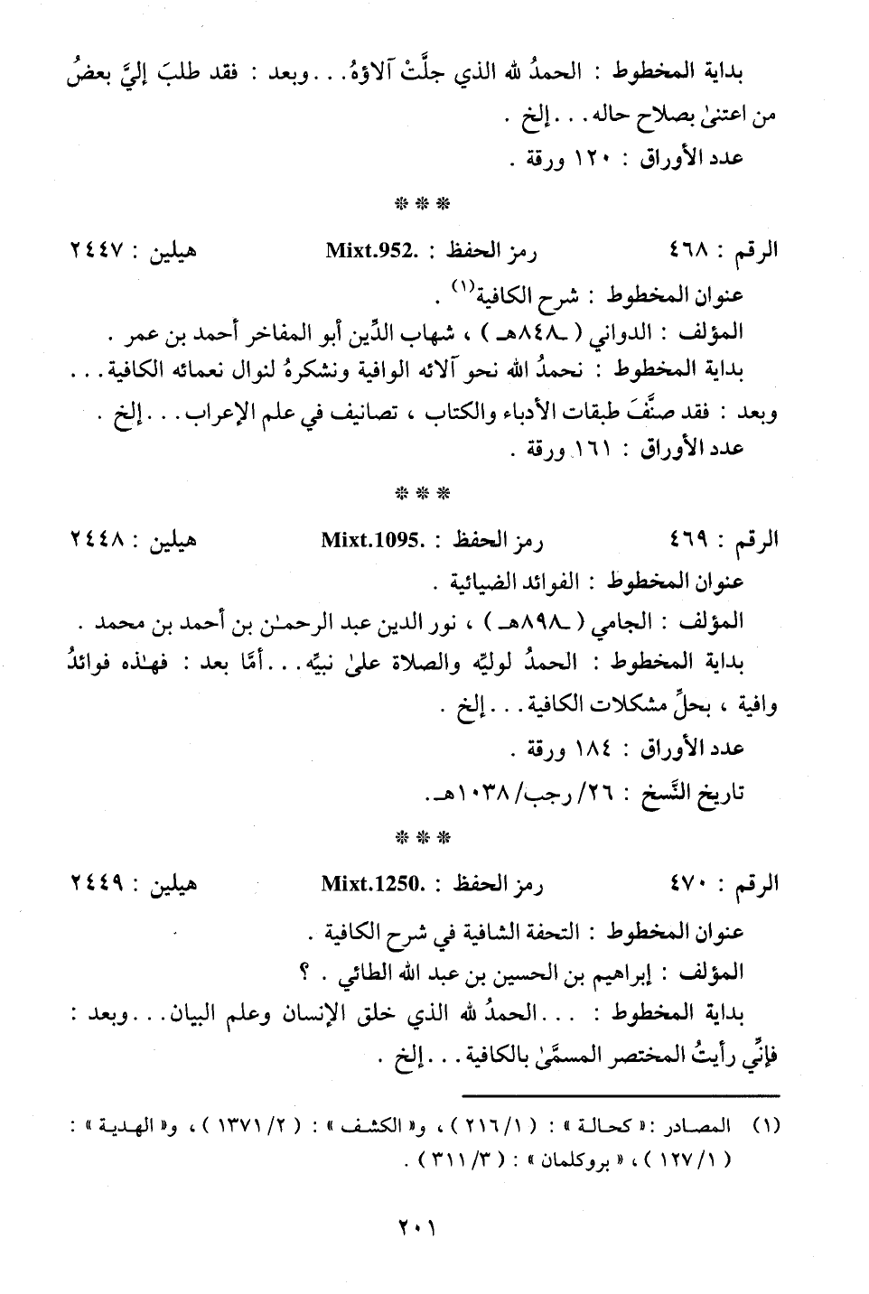 (¬1) المصادر: "كحالة": (1/ 216)، و"الكشف": (2/ 1371)، و"الهدية": (1/ 127)، "بروكلمان": (3/ 311).