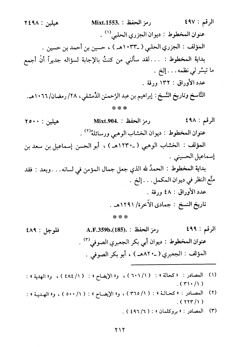 (¬3) المصادر: "بروكلمان": (6/ 496).