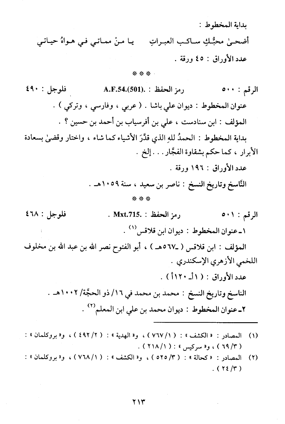 (¬1) المصادر: "الكشف": (1/ 767)، و"الهدية": (2/ 492)، و"بروكلمان": (3/ 69)، و"سركيس": (1/ 218).