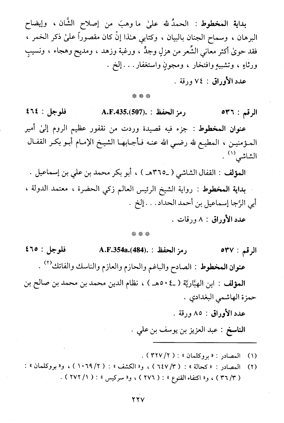 (¬1) المصادر: "بروكلمان": (2/ 327).