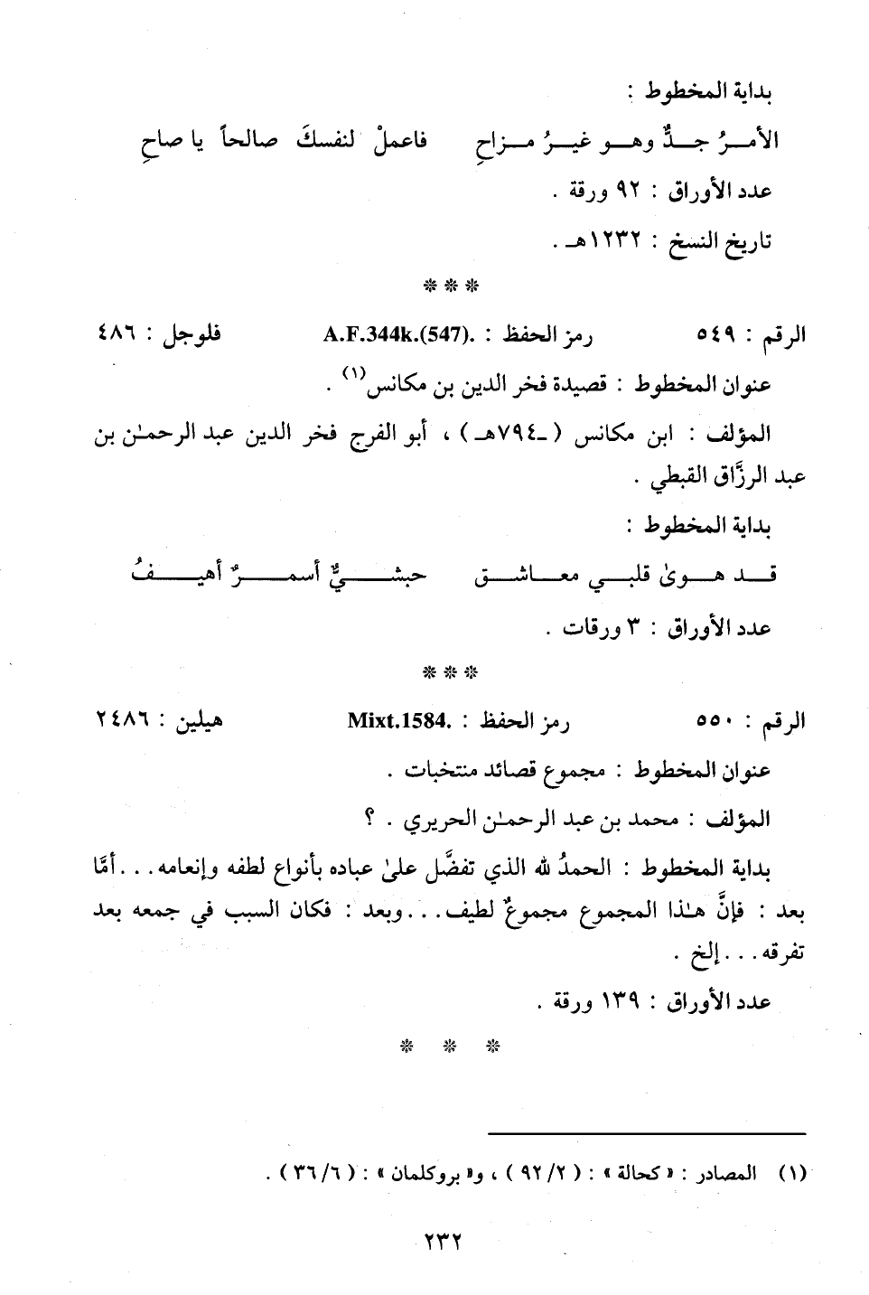 الرقم: 549. . . رمز الحفظ: A.F.344 k. (547) . . . فلوجل: 486