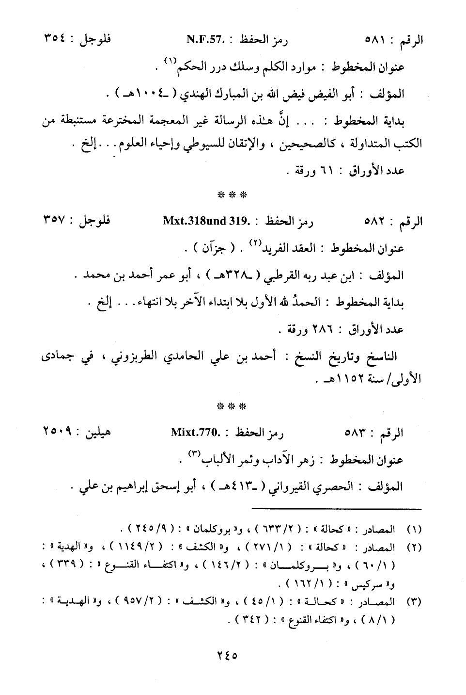 الرقم: 582. . . رمز الحفظ: Mxt.318 und 319 . . . فلوجل: 357