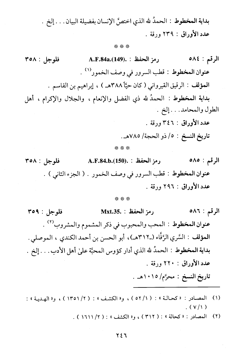 الرقم: 584. . . رمز الحفظ: A.F.84 a. (149) . . . فلوجل: 358