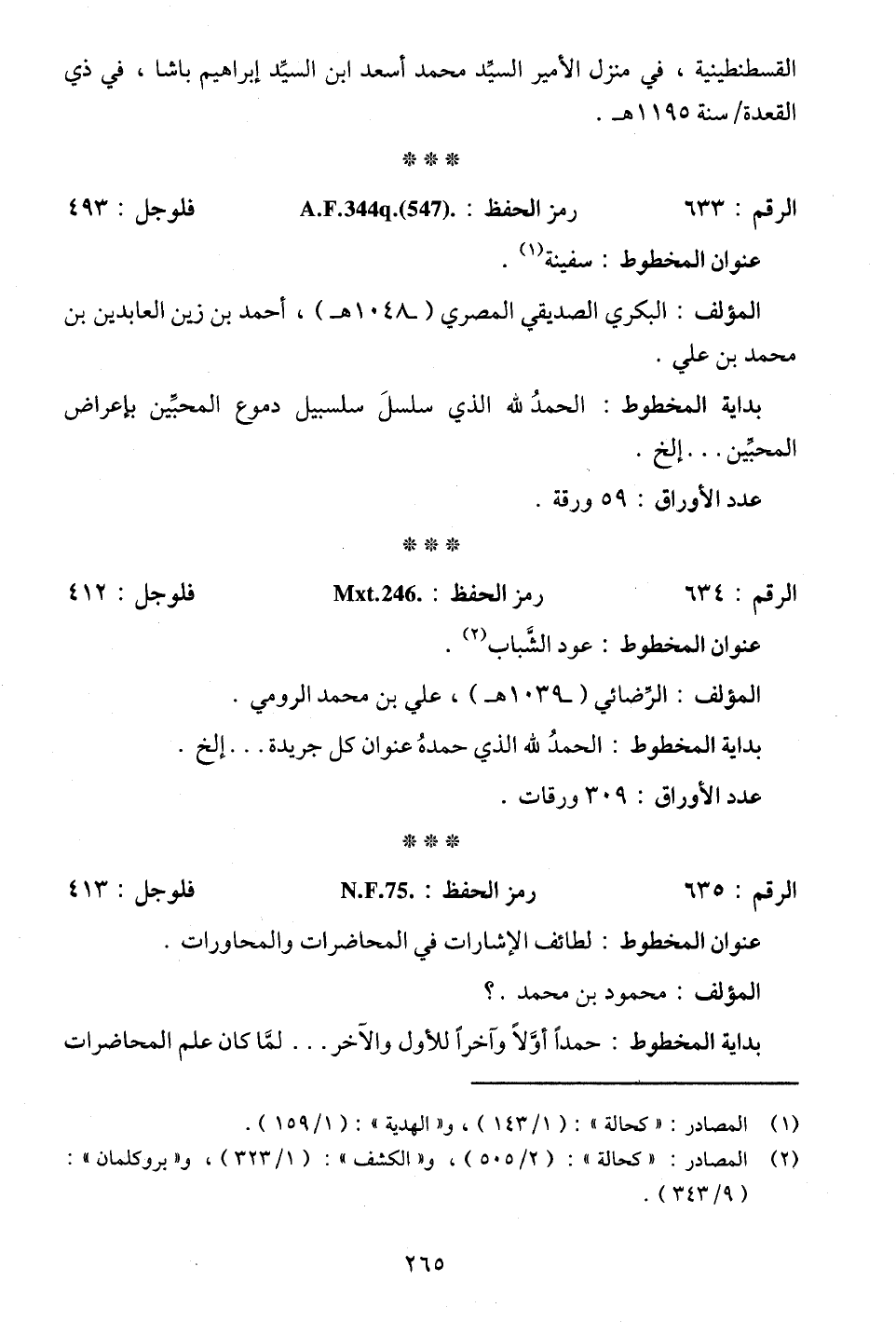 الرقم: 635. . . رمز الحفظ: N.F.75. . . فلوجل: 413
