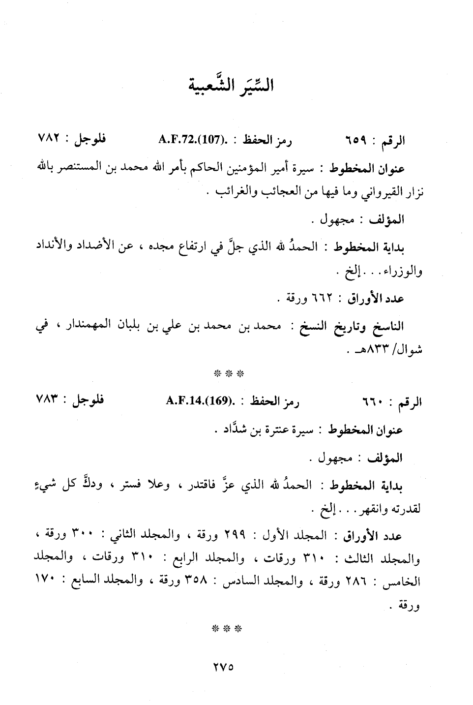 عنوان المخطوط: سيرة أمير المؤمنين الحاكم بأمر اللَّه محمد لن المستنصر باللَّه نزار القيرواني وما فيها من العجائب والغرائب.