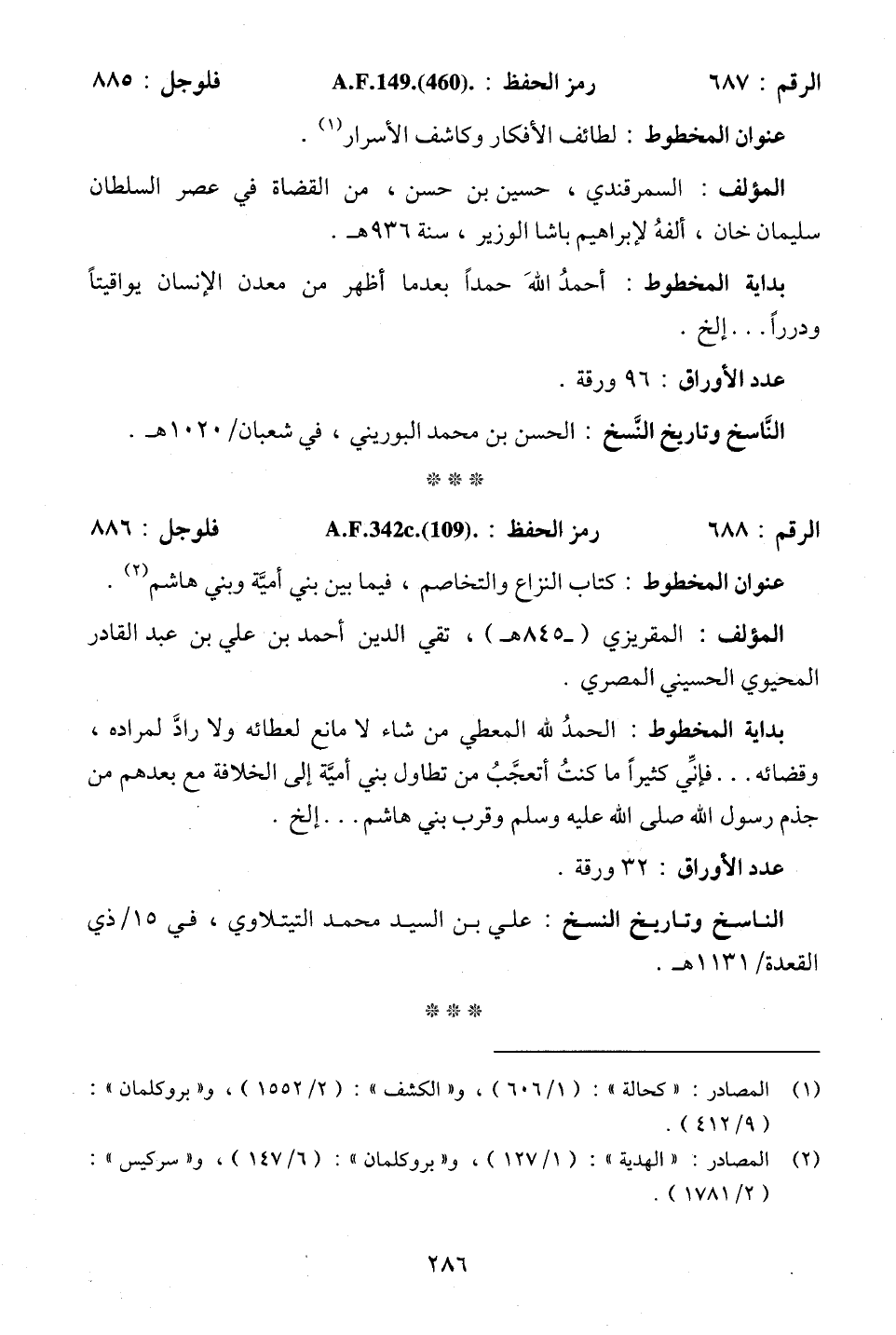الرقم: 688. . . رمز الحفظ: A.F.342 c. (109) . . . فلوجل: 886