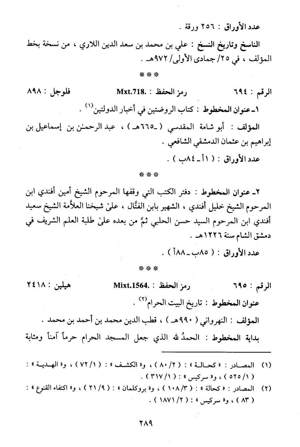 (¬1) المصادر: "كحالة": (2/ 80)، و"الكشف": (1/ 72)، و"الهدية": (1/ 525)، و"سركيس": (1/ 317).