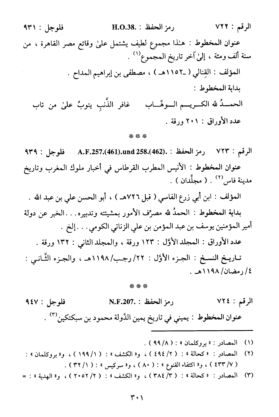 الرقم: 722. . . رمز الحفظ: H.O.38. . . فلوجل: 931