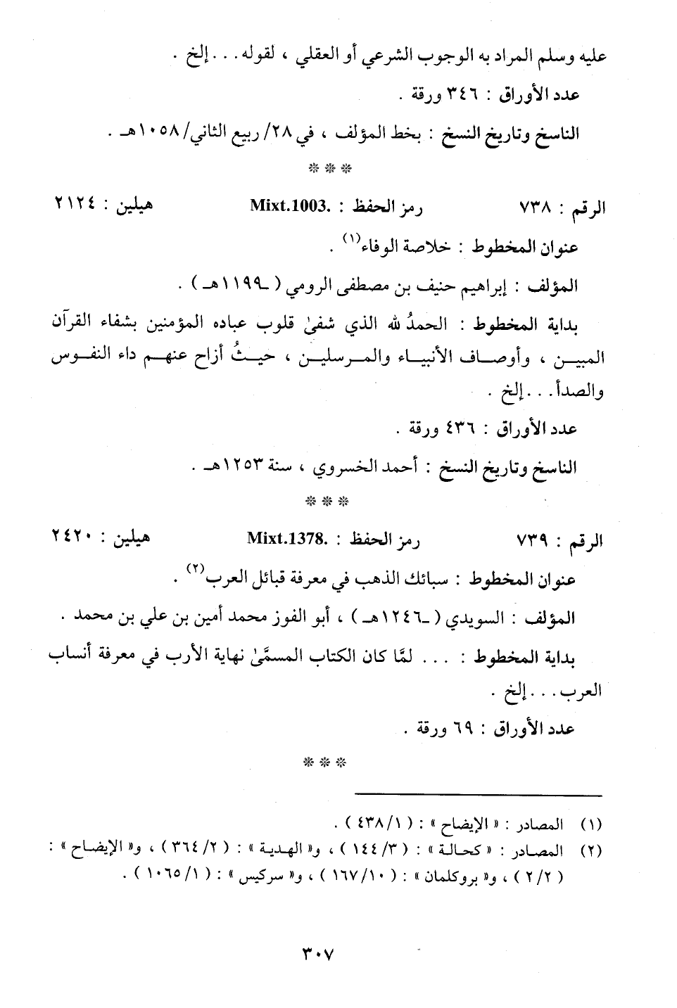 (¬2) المصادر: "كحالة": (3/ 144)، و"الهدية": (2/ 364)، و"الإيضاح": (2/ 2)، و"بروكلمان": (10/ 167)، و"سركيس": (1/ 1065).