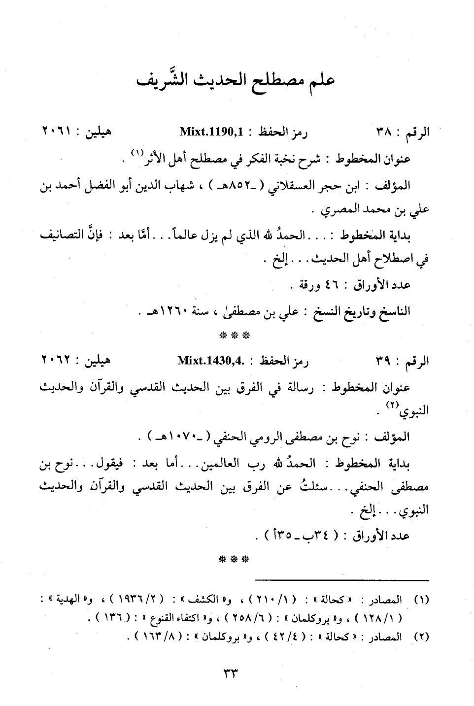 (¬1) المصادر: "كحالة": (1/ 210)، و"الكشف": (2/ 1936)، و"الهدية": (1/ 128)، و"بروكلمان": (6/ 258)، و"اكتفاء القنوع": (136).