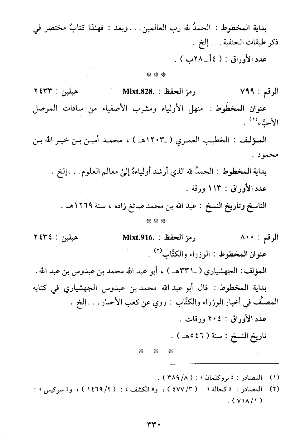 (¬2) المصادر: "كحالة": (3/ 477)، و"الكشف": (2/ 1469)، و"سركيس": (1/ 718).