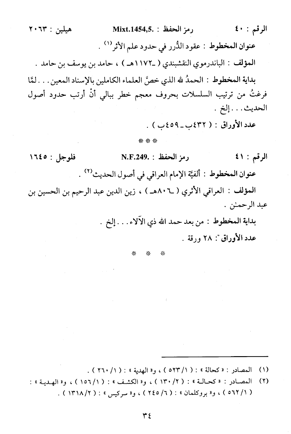 (¬2) المصادر: "كحالة": (2/ 130)، و"الكشف": (1/ 156)، و"الهدية": (1/ 562)، و"بروكلمان": (6/ 245)، و"سركيس": (2/ 1318).